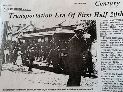 This article was originally featured on the Facebook page of the Dallastown Area Historical Society. Content is inspired by or quoted from an article written by D. Miriam Smith for The Shopper about Dallastown’s Trolleys.